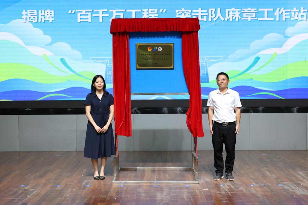 法政学院郑绮雯同学作为实践团队代表宣誓,号召同学们以饱满的热情、严谨的态度和扎实的作风完成任务。校团委副书记、“双百行动”学校驻麻章区服务队队长赵裕彬与团麻章区委书记陈月明共同为“百千万工程”突击队麻章工作站揭牌,标志着校地长效服务机制的新探索。